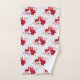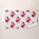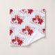 L'arrière - plan présente des rayures grises et blanches, avec un poinsettia rouge et blanche à côté d'une bougie rouge surmontée de gouttes de parties scintillant blanche.