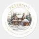 Ces étiquettes d'adresse de retour impressionnantes avec une maison rustique festive en hiver avec des décorations de neige et de Noël, votre nom de famille et votre adresse en or rendra l'adressage de vos cartes de déménagement de Noël encore plus facile! Ils sont si faciles à coller sur l'enveloppe ! La police est nette et nette, ce qui les rend modernes mais traditionnelles. Il est si facile de les faire les vôtres. Sélectionnez Personnalisez ce modèle et entrez votre nom de famille et votre adresse. C'est si facile !