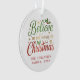 Célébrez la saison avec cet "ornement moderne de Noël de typographie rouge et verte". Conçu avec une typographie de script festif qui dit "Croyez en la magie de Noël" en vert, or et rouge, entouré de baies sèches, flocons d'or, étoiles chatoyantes, et de joyeux points rouges et verts, cet ornement apporte un charme de vacances classique à votre arbre. Personnalisez avec votre nom de famille ou le texte de vos meilleurs voeux personnalisé en caractères rouges gras sur un arrière - plan blanc immaculé pour un simple mais significatif souvenir. Une façon moderne et festive de dire Joyeux Noël tout en ajoutant une touche personnelle à votre décor de vacances.