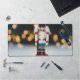 Noël SlipperyJoe noisette figurine ornement lumières floues arrière - plan lumières blanches veste blanche pantalon bleu cheveux blancs barbe artistique gay pride cadeaux LGBTQIA bottes noires festives décoration ambiance