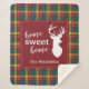 Accueil doux maison Noël brillant et gras avec l'espace réservé du nom de famille, vous pouvez facilement customiser en cliquant sur le bouton "Personnaliser", Avec la silhouette et le cerf et clan Buchanan tartan en chèque vert, jaune et rouge. Idéal pour des nuits douillettes pendant les vacances