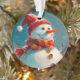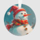 Il n'y a pas grand chose de plus agréable pour un ornement de Noël vintage que notre bonhomme de neige fantaisiste. Il a Père Noël en casquette, une grande écharpe rétro, et bien sûr un nez de carotte. Heureux, avec ses boutons et ses bras de bâton. Au fond de cette ornementation ronde se trouve le salut traditionnel, "Joyeux Noël", un paragraphe avec un exemple de prose, et l'espace pour le nom de famille et l'année. Tout le beau texte rouge peut être édité. Assurez-vous de modifier le nom et l'année.