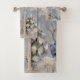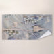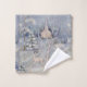 Magnifique serviette de Noël avec un beau paysage d'hiver avec église blanche, jolie neige mousseuse blanche et beau cerf blanc.