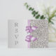 Cartes de réponse RSVP élégantes personnalisées argent et lilas avec un beau motif de paillettes argentées imprimées, un joli nœud imprimé brillant lilas et ruban et un joli bijou diamant imprimé. Ces cartes plates élégantes, glamour et à la mode sont décorées des deux côtés. De belles invitations chic, tendance et modernes. VEUILLEZ NOTER : Ce sont des graphiques imprimés plats - pas de vrais nœuds, paillettes ou parties en relief. Le texte, la police et la couleur de la police peuvent tous être personnalisés. Si vous avez besoin d'aide pour personnaliser votre produit, veuillez me contacter via ma boutique. Je serai ravi de vous aider. J'ai des produits assortis dans ma boutique.