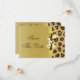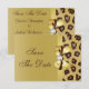 Cartes "save the date" plates en or personnalisées élégantes pour mariages avec un beau motif imprimé de fourrure de léopard marron et beige, un joli nœud et ruban imprimés en or brillant et un joli bijou diamant imprimé. Ces invitations classe, glamour et à la mode sont décorées des deux côtés. De belles invitations chic, tendance et modernes. Veuillez noter : Toutes les invitations sur Zazzle ont des images imprimées plates. Le texte, la police et la couleur de la police peuvent tous être personnalisés. Si vous avez besoin d'aide pour personnaliser votre produit, veuillez me contacter via ma boutique. Je serai ravi de vous aider. J'ai des produits assortis dans ma boutique.