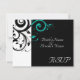 Carte RSVP pour correspondre à notre faire-part de mariage de pivotement noir et blanc aqua, avec arrière - plan de feuille de défilement graphique en gras. Customisez en ligne avec vos coordonnées de mariage.