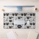 Ce tapis de bureau amusant a un motif de drôles de visages de chats de dessin animé en noir et blanc. Une bannière circulaire avec votre monogramme en blanc est au centre inférieur. N'oubliez pas de sourire ! *Merci à Soul Cliparts World pour les images du visage de chat dans ce design.