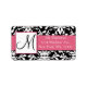 Noir Blanc Damas Oiseaux Étiquette de adresse rose