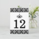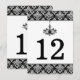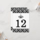 Noir, carte de numéro de table en damassé argent,
