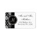 Modèle Damas noir et blanc avec votre Monogramme Étiquettes d'adresse de retour initiale pour l'enveloppe RSVP de mariage. Si vous avez besoin de s'adresser à vos Enveloppes RSVP pourquoi ne pas utiliser ces beaux étiquettes? Customisez avec votre initiale monogramme, nom et adresse. Choisissez aussi la couleur arrière - plan et la couleur monogramme. Elke Clarke©