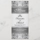 Motif damassé noir sur une carte arrière - plan en dégradé argenté Mariage Menu Rack. Les éléments correspondants sont présentés ci-dessous :