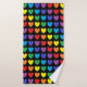Numériques abstraits sont des rangées des coeurs colorés par arc-en-ciel sur un fond noir. Couleurs comprenant rouge, orange, jaune, vert, bleus, pourpres.