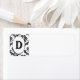 Un magnifique étiquette damassé noir & blanc avec un ovale contenant la lettre D.