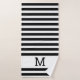 Serviette rayée noire et blanche en gras personnalisée avec votre monogramme initial.