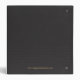 Elégante impression en faux cuir noir avec un logo en or remplaçable.