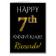 Cette carte de voeux simple et personnalisée pour l'anniversaire du mariage présente le message "HAPPY 7th ANNIVERSARY", avec le "7th" ayant une apparence fausse or. L'avant est également orné d'un nom personnalisé et d'un arrière - plan noir. L'intérieur comporte un message d'accueil personnalisé pour l'anniversaire de mariage. Il pourrait être donné à un mari ou à une femme pour célébrer le septième anniversaire du couple mariage. [~Z0000076]