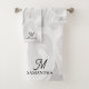 Une serviette en marbre noir, blanc et gris unique et élégante. Customisez le script Monogram et nom.