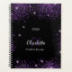 Arrière - plan noir, texte blanc et violet. Décoré avec de la poussière de parties scintillant en faux violet. Personnalisez et ajoutez votre prénom, vos initiales monographiques, votre nom complet et votre année.