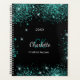 Arrière - plan noir, texte blanc. Décoré avec de la poussière de parties scintillant turquoise et verte de mer. Personnalisez et ajoutez vos initiales monographiques, nom et année.