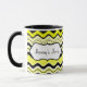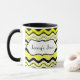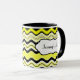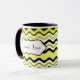 Cette tasse en céramique rayée onduleuse jaune, noire, et blanche élégante est personnalisée avec votre propre texte. Grand pour des lunchrooms ou des dortoirs d'université. Vous pouvez également choisir d'autres styles et tailles.