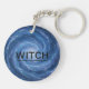 This keychain is a unique two for one with its powerful punch standing against fascism. On one side it features a stylized evil eye with intricate blue and white swirls surrounds the pupil, symbolizing vigilance and mystery, accompanied by the bold phrase "No Kings." And on the other side it features swirling storm clouds forming a vortex with lightning streaks, framing the bold text acronym "WITCH: We Interrupt Those Choosing Hate," symbolizing power confronting negativity. Finished as a mixed media art print.