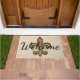 Pretty welcome in script doormat with a large gold fleur de lis symbol.