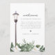 This wedding welcome letter and timeline features watercolor magnolias and a french quarter inspired lamp post. Use this template to edit all wording, font, font colour, and the background colour to match your event style. Click 'click to customize further' in the personalization section to open up the full editor. To add new icons, visit https://www.svgrepo.com/ and search the icon you need. Download as a .svg and then drag and drop it into the Zazzle editor. Change the colour of the icon on the right-hand side of the editor.