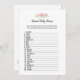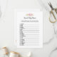 Un jeu amusant pour le baby shower est le jeu de noms de bébé animal. Cette carte de jeu présente des fleurs roses en haut. Au verso, une petite ours en peluche se penche sur un tonneau de miel en regardant une abeille au miel avec des modèles.