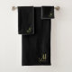 Custom Modern Elegant Modèle Typographie Monogramme Nom Bain & Or Noir / Beauté / Accessoires de salle de bain / Serviettes de bain / Linge tendance + Serviette à main + Serviette de bain = Ensemble de serviettes de bain.