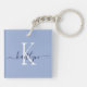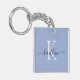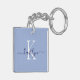 Ce porte - clé moderne avec votre prénom dans une police de script tendance en bleu marine et votre première initiale dans une police de casquette moderne en blanc sur bleu clair est parfait pour vos clés.