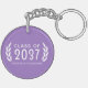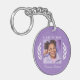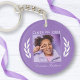 Un porte - clé élégant à deux côtés - keyring. Toutes personnalisées, avec une typographie stylisée avec "Classe de", l'année de graduation, le nom de la diplômée (en écriture manuscrite), le nom de l'école et bien sûr une photo. La photo du diplômé est accentuée par des feuilles de lauriers royaux. Le texte et la garniture sont blancs avec l'arrière - plan dans une élégante couleur violet. Si vous le souhaitez, modifiez facilement la couleur de l'arrière - plan à ce que votre préférée est ou même à la couleur primaire de votre école. C'est l'idée cadeau parfait Graduation qui apportera de grands souvenirs pour les années à venir.