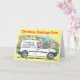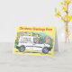 Carte de Noël d'entreprise électrique avec nom sur une Van de l'entreprise. Image couleur d'un conducteur au volant d'une fourgonnette blanche.