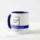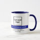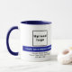 Mettez l'accent sur votre nom d'entreprise. Mettez-le en surbrillance. Mug combo bleu marine que vous pouvez customiser pour mettre votre nom d'entreprise en surbrillance. Tasse personnalisable que vous pouvez utiliser dans votre café, diner ou restaurant pour construire une notoriété de marque pendant que vos clients aiment siroter le café ou le thé aromatique et savoureux que vous leur avez servi. Mug comme produit promotionnel, cadeau ou cadeau offert à vos clients ou clients, une stratégie de marketing pour annoncer votre entreprise ou promouvoir votre marque. Pour customiser cette tasse, téléchargez votre logo d'entreprise, tapez votre nom d'entreprise, votre adresse et votre numéro de téléphone. Veuillez vérifier l'apparence sur les côtés avant et arrière après avoir téléchargé le logo et tapé des textes. Si l'apparence vous plaît, vous pouvez passer votre commande maintenant. Si vous avez besoin de redimensionner et déplacer le logo et les textes pour s'adapter sur cette tasse ou sur la taille et le style que vous choisirez, s'il vous plaît changer dans l'outil de conception. Vous pouvez également effectuer d'autres modifications en fonction de vos préférences dans l'outil de conception, comme changer la couleur de surbrillance, la couleur de police et le style de police.