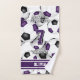 Cette serviette à main esprit d'équipe pour un joueur de football comprend le nom et le numéro de maillot de l'athlète et le nom de l'équipe et de la mascotte sur l'image arrière - plan d'un groupe de balles de football violet, noir et blanc disposées aléatoirement sur un arrière - plan blanc. Les boules de football sont ombragées de façon sélective pour leur donner une apparence 3D. Le nom de l'athlète peut être personnalisé sur des rayures horizontales de varsité violette au bord inférieur de la serviette - par katz_d_zynes