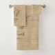 Des lauriers personnalisés monogrammed nom de famille et établi année élégante rustique style rustique maison de ferme ocre beige burlap serviettes de bain modèle. +++++++ Un cadeau moderne pour salle de bain en saké pour les mariages, anniversaires, ménagères, Thanksgiving, Noël ou toute autre occasion.