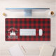 Nom de famille Cabine Red Buffalo Plaid with Pine Trees Desk Mat - Idéal pour l'utilisation sur un bureau ou une table de travail.