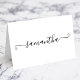 Remarque importante : Il s'agit d'un produit à carte plate que vous devrez marquer et plier seul après les avoir reçus. Pour obtenir les meilleurs résultats, utilisez un outil de pointage de carte d'un magasin d'artisanat. Cette taille va se replier dans une taille 2,5 x 3,5. Vous pouvez customiser le style et la taille de script de calligraphie manuscrite moderne mignon bouclée noir. Modifiez la couleur ou les couleurs de texte de l'arrière - plan pour qu'elles correspondent à votre palette de mariages. Aucun service d'automatisation de texte n'est disponible. Vous devrez créer une carte séparée pour chaque invité et les ajouter à votre commande individuellement.