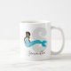 Une tasse de sirène avec une sirène souriante, un nom personnalisable et une initiale. Le bleu, le marron, le gris et le blanc dominent l'ensemble. La sirène a une teinte brune et les cheveux noirs. Customisez simplement le nom et l'initiale, ajoutez cette tasse à votre panier et savourez votre prochaine boisson avec une sirène. Nom de la sirène bleue Monogramme café Mug Conception de jour férié | ©Melissa Patton Artiste/Illustrateur