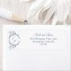 Élégante étiquette d'adresse de retour de mariage avec un chandail botanique dessiné à la main dans les tons bleu marine. Idéal pour les enveloppes bleu marine. Noms et initiales de monogramme en calligraphie élégante Partie de notre collection "Mariage de monogramme botanique de couleur d'eau marine" avec une variété de produits de coordination disponibles, y compris des enveloppes, enveloppes, phoques et invitations. Visitez la collection entière avec ce lien : https://www.zazzle.com/collections/navy_watercolor_botanical_monogram_wedding-119781162008756698