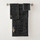 Nom personnalisé de l'animal de compagnie Black Botanical Gold Script serviette ensemble avec un monogramme et un nom de script.