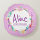 Aquarelle indigène de la plumes de saumons et perles portent des filles personnalisées coussin. Personnalisez avec votre propre nom et nom signifiant sur le devant du coussin. Lit actuellement Aline Une lumière éclatante, joyeuse et inventive. Joli coussin d'art décoratif sur une couleur arrière - plan violet pastel qui peut être changée si nécessaire. Idéal pour une fille à l'esprit libre. © Original aquarelle plume et perle art et design par Sarah Trett pour www.mylittleeden.com et namesense