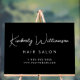 Acrylique noir chic pour votre entreprise avec une ambiance minimaliste avec votre nom d'entreprise ou marque dans un script de signature blanc élégant et texte supplémentaire ci-dessous si désiré dans la typographie blanche moderne.