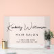 Signe d'acrylique dépoli personnalisé pour votre entreprise avec une ambiance minimaliste avec votre nom d'entreprise ou marque dans un script de signature élégant et texte supplémentaire ci-dessous en typographie moderne simple.