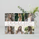 La carte de faire-part moderne de graduation comporte six de vos photos préférées alignées côte à côte en deux rangées, avec le nom de votre diplômé affiché au centre en papier doré rose. Personnalisez avec votre école et votre année de diplôme à travers le centre. Ajoutez un message personnel et une photo supplémentaire à l'arrière.