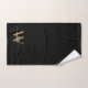 Serviette de main personnalisée élégante et féminine avec monogramme noir et or, style signature de nom personnalisé. Caractérisée par un prénom (ou nom de famille) dans un joli style de lettrage manuscrit avec une queue en forme de swash (ou calligraphie) avec monogramme initial en or et blanc sur fond noir. Cadeau de pendaison de crémaillère élégant et féminin, également pour un anniversaire, un mariage, une soirée d'enterrement de vie de jeune fille, la fête des mères, une douche de mariée, une fête d'anniversaire pour les 16 ans, un cadeau d'anniversaire de mariage et pour une fête de remise de diplôme. C'est pour la fille qui aime les choses élégantes et stylées.
