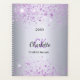 A faux silver metallic looking background decorated with purple faux glitter dust. Personalize and add your first name, monogram initials, full name and a year.