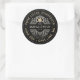 Customisez ce étiquette avec votre nom d'état en texte incurvé en haut de ce étiquette. Étiquette de sirop d'érable local orange et élégant, noir rond, avec les mots "gaufré" en or poli. Bordure en pointillé dans un or muet. Votre nom et votre emplacement dans le texte courbe le long de la partie inférieure du étiquette.