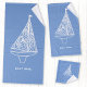 Ajoutez votre propre nom de bateau à cette conception moderne de voilier bleu et blanc. Parfait pour un bateau, un lac ou une maison de plage ou pour tous ceux qui aiment la voile.