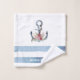 Cette image présente un nom de bateau, et ancre sur un arrière - plan rayé bleu et blanc clair.