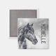 Nom du cheval blanc noir moderne Aquarelle Magnet